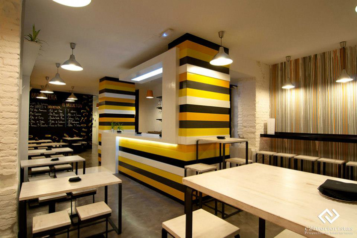 На юге Испании, в городе Малага открылся новый тапас-бар La Brochetería. Его хозяева пригласили профессиональных дизайнеров из студии «с2interioristas» для оформления помещения. В итоге получился довольно современный бар, площадью около 80 кв. метров в едином стилевом решении.